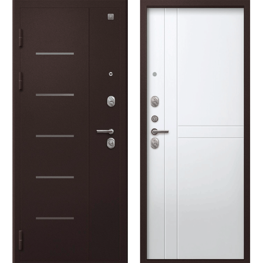 Цилиндр — ключ/вертушка, ручка раздельная, 3 петли, Броненакладка на цилиндр, Ночная задвижка, Противосъемные штыри