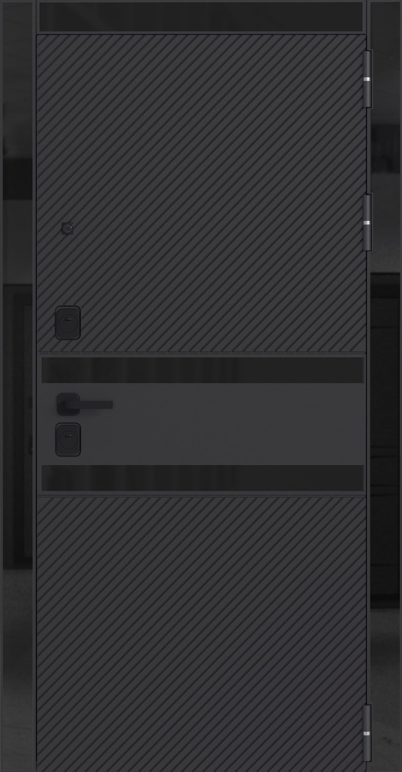 Внешнее покрытие: Чёрный муар с блёстками, МДФ-панель 16 мм с фрезерованным рисунком, цвет основной «Софт чёрный»; Металл: полимерно-порошковое покрытие, цвет Чёрный муар с блестками