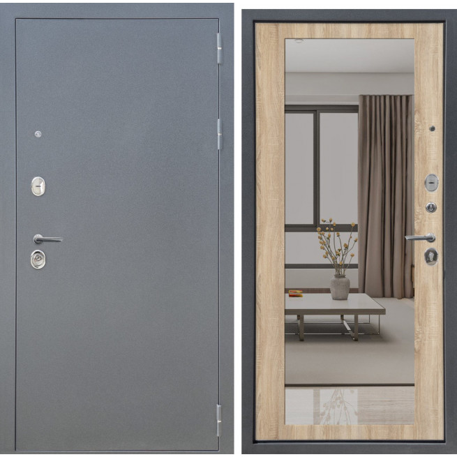 Накладки: врезная броненакладка основного замка, овальная накладка дополнительного замка с защитой от сквозняка; цвет — сатин хром
