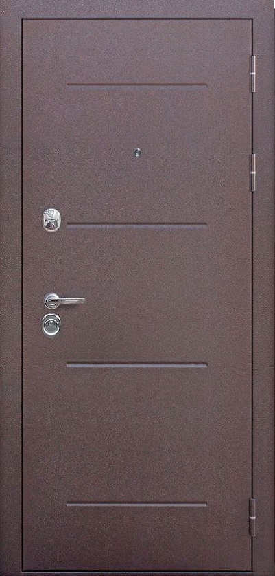 Ручка раздельная, эксцентрик, ночная задвижка, броненакладка на цилиндровом замке, глазок, 3 петли, нержавеющий порог