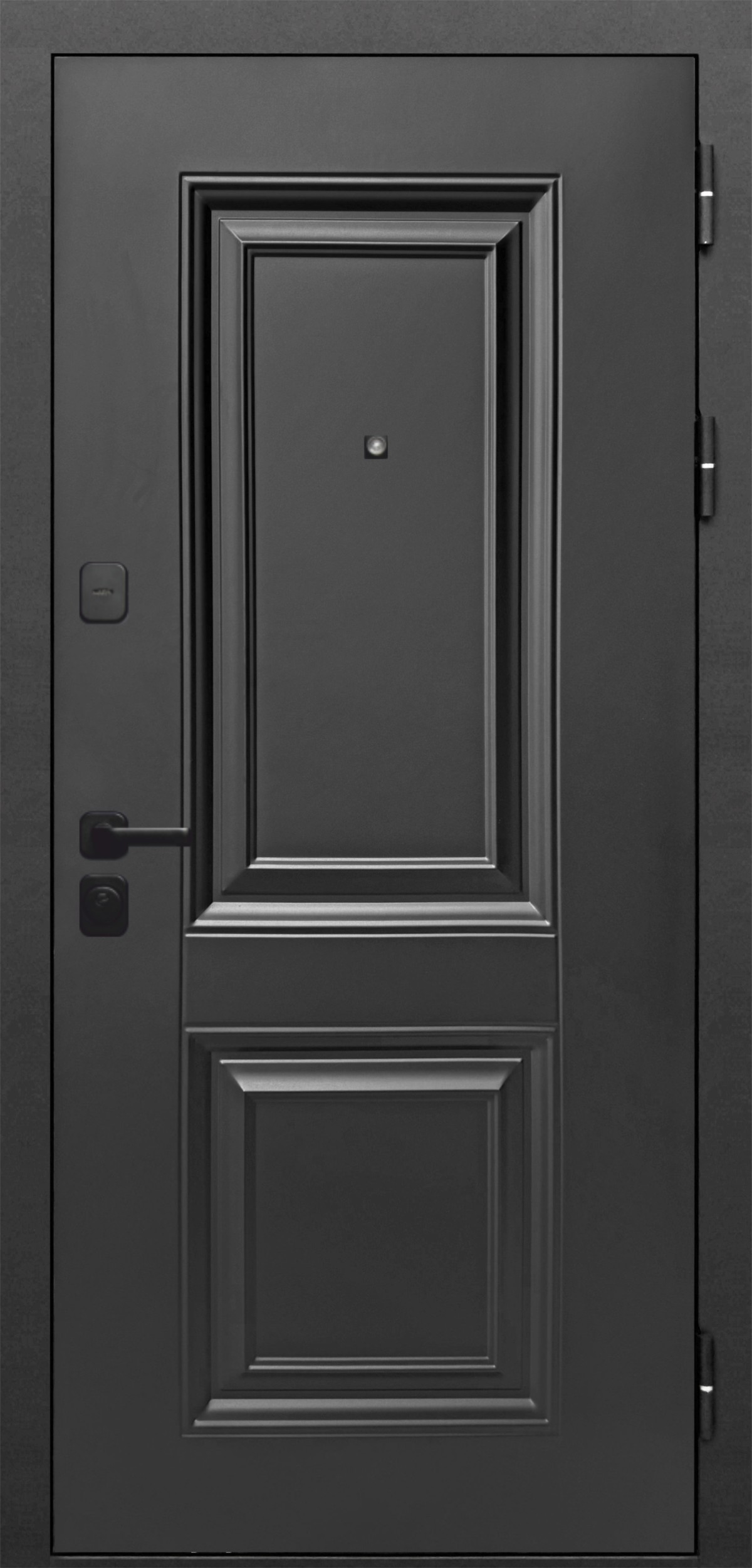 Накладки: врезная броненакладка основного замка и декоративная накладка дополнительного замка с защитой от сквозняка; цвет — черный