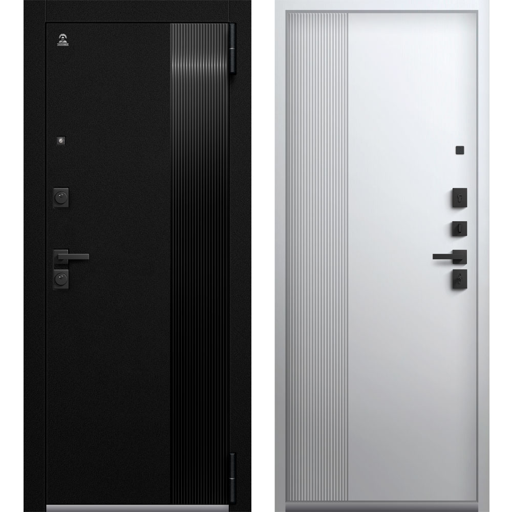 Петли 3 шт, Замок цилиндровый Genesis 9.17 (ключ+вертушка), сувальдный Genesis 9.16, Независимая ночная задвижка, Глазка нет, Регулировка прижима притвора: эксцентрик, Броненакладка, Наличник металлический вровень с панелью