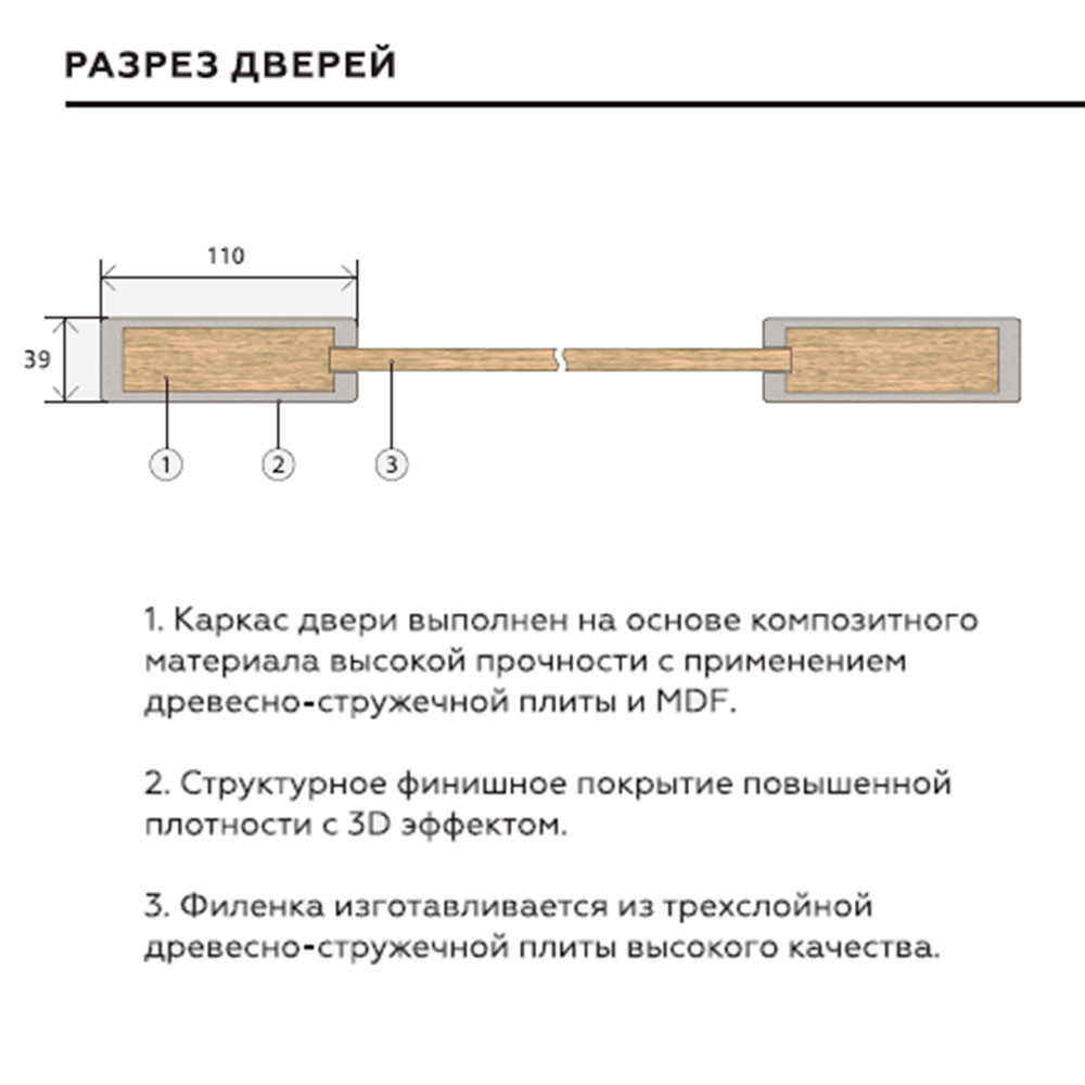 Конструкция полотна: Каркасно-щитовая. Фрезерованная панель из МДФ плиты со структурированной основой.
