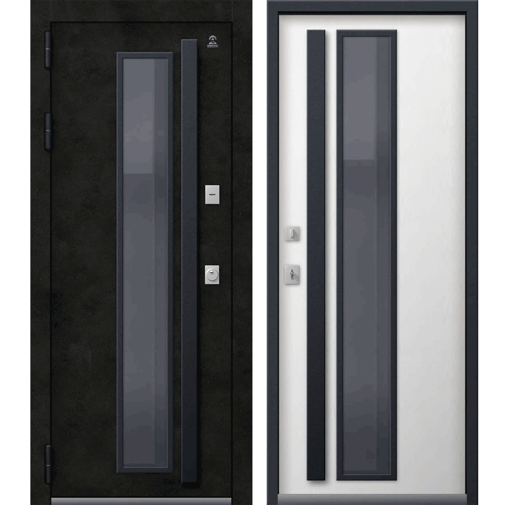 Внешнее исполнение: Металл + МДФ 10 мм Бетон тёмный + Двухкамерный стеклопакет (цвет стекла Grey)