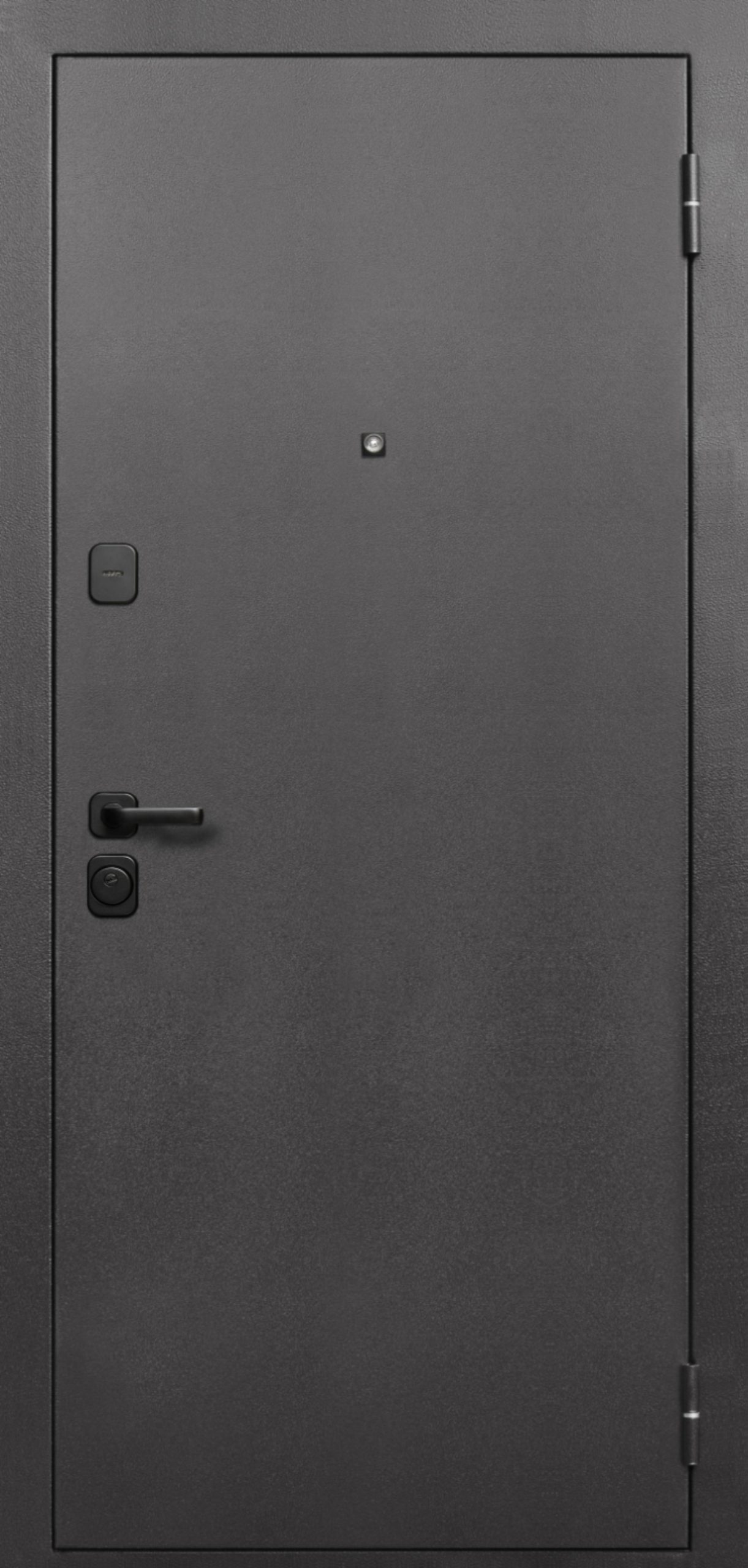 Ручка раздельная, цвет — черный; Глазок широкого обзора; цвет -черный; Петли 2 шт., наружные, открывание 180°