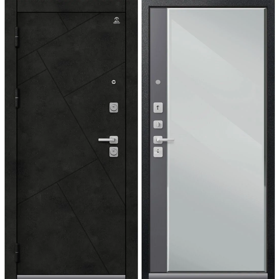 Внешнее покрытие: металл черный муар + МДФ-панель 10 мм «Бетон темный»