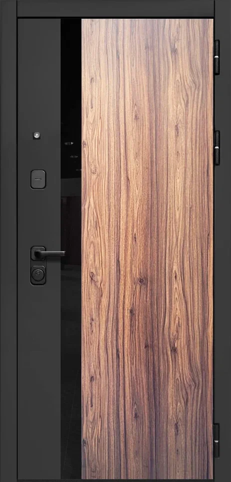 Внешнее покрытие: фрезерованная МДФ-панель 12 мм «Орех каньон коньяк», «Сатин Черный» Вставка — Черный лакобель