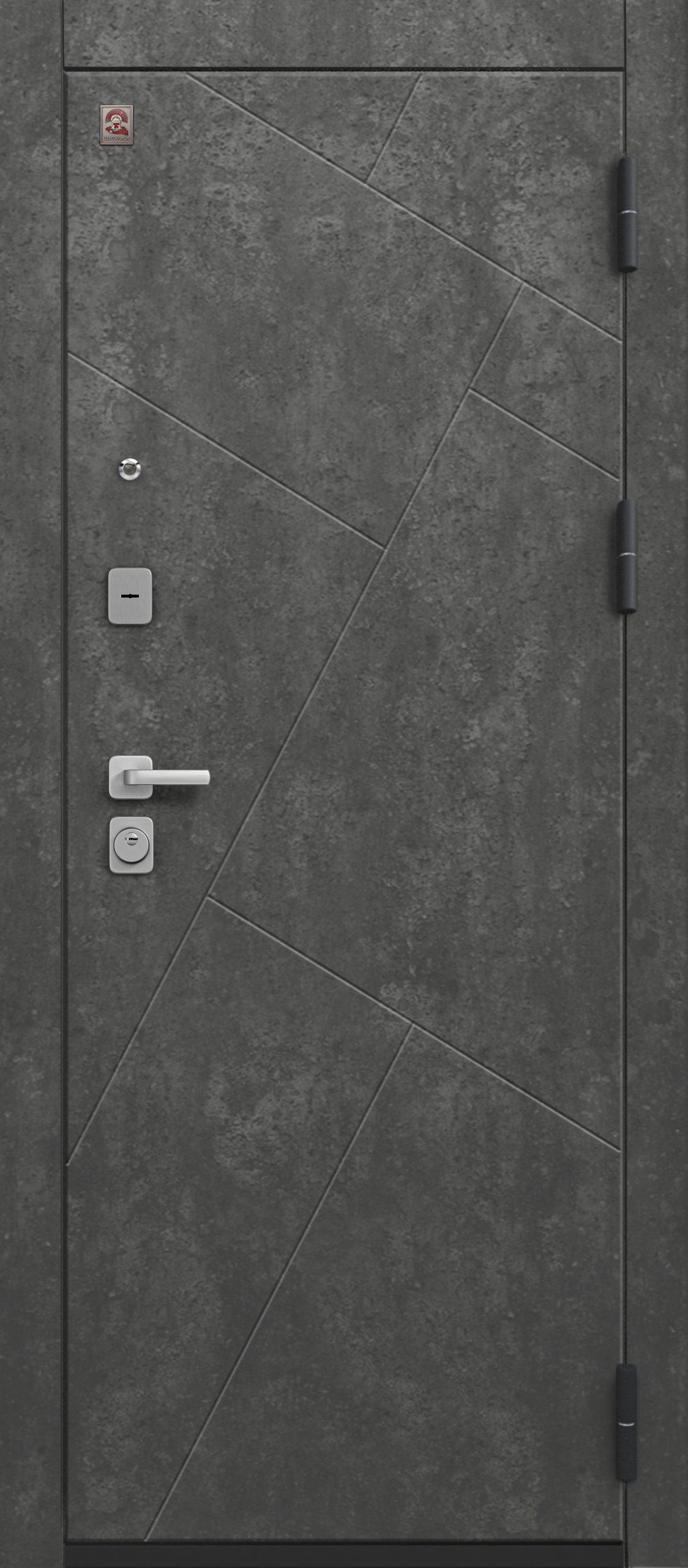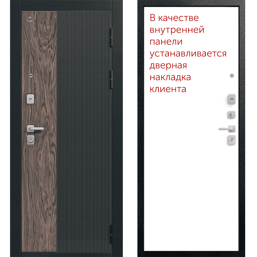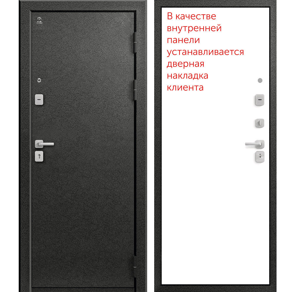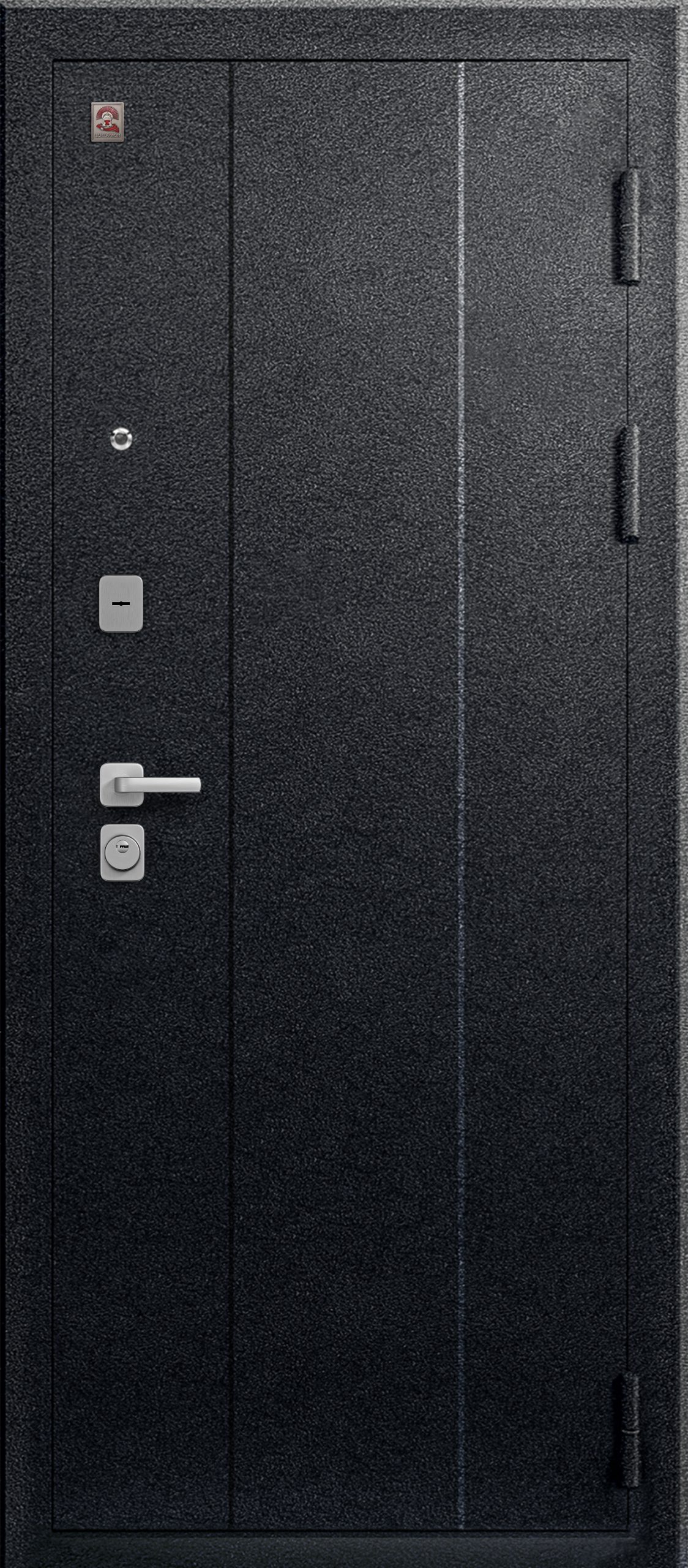 Эксцентрик (регулятор притвора), Броненакладка на цилиндр, Ночная задвижка, Ручка раздельная, Глазок, Противосъемные штыри, 3 Петли
