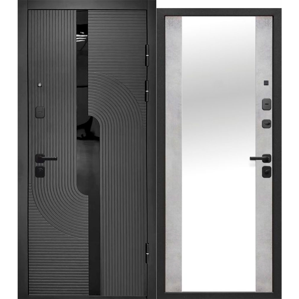 Покрытие внешнее: Атмосферостойкое порошково-полимерное «Букле Графит» + МДФ панель 8 мм Сатин Черный со вставкой из нержавеющей стали