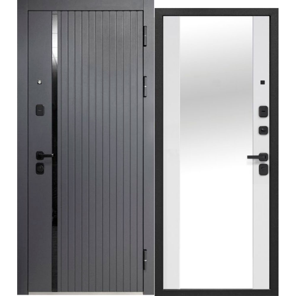 Покрытие внешнее: Атмосферостойкое порошково-полимерное «Букле Графит» + Мдф панель 8 мм Сатин Графит со вставкой из нержавеющей стали