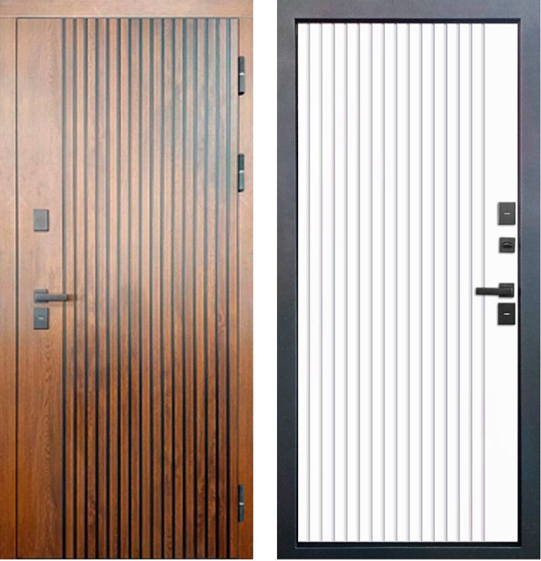 Внутреннее покрытие: фрезерованная МДФ-панель 10 мм. Плёнка с вертикальным рельефом, цвет Белый матовый/Грецкий орех