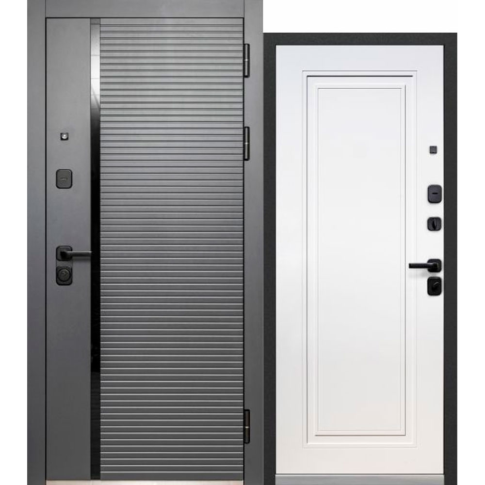 Внешнее покрытие: фрезерованная МДФ-панель 12 мм, вставка черный лакобель, цвет пленки «Сатин графит»
