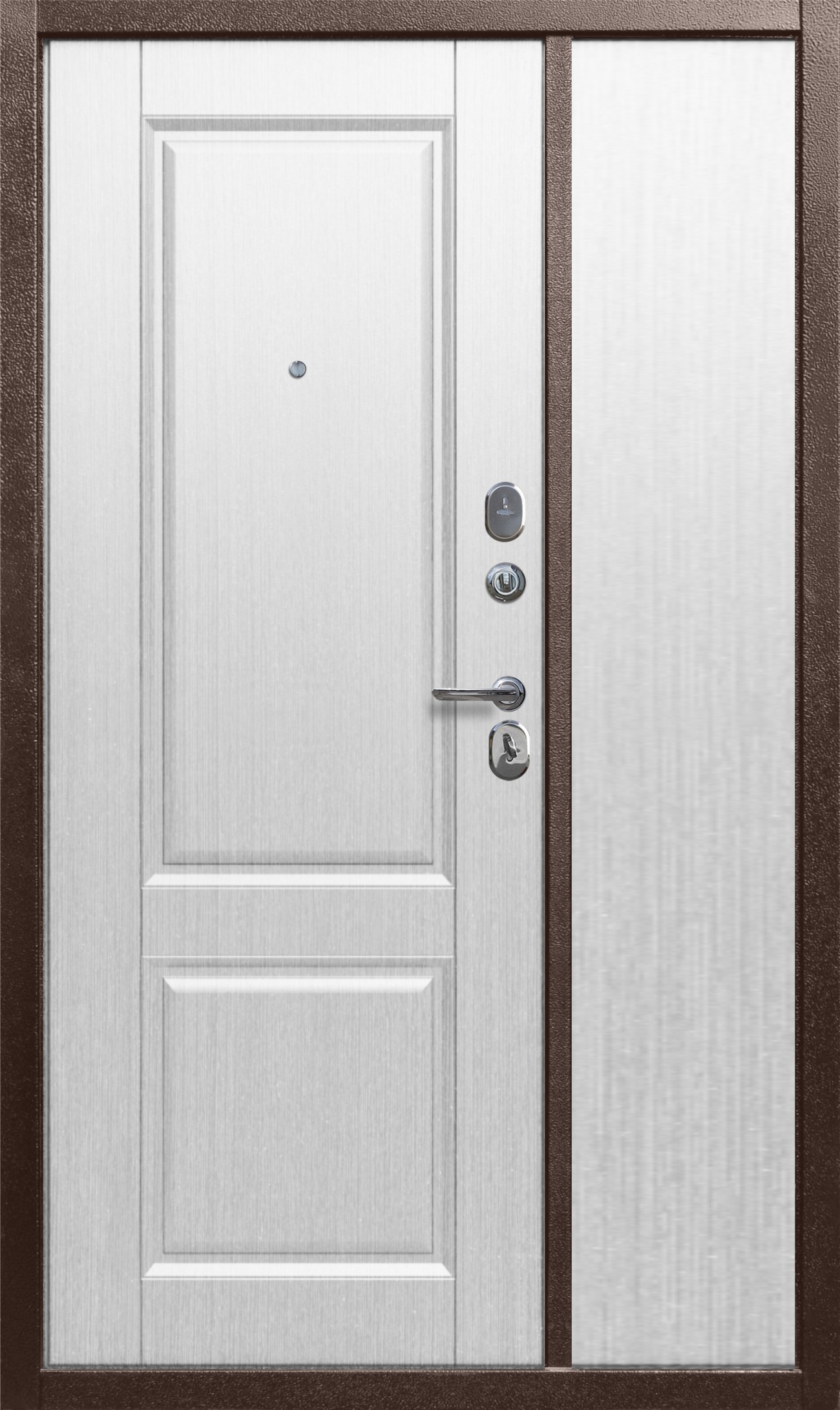Врезная броненакладка основного замка и декоративная накладка дополнительного замка с защитой от сквозняка, цвет — хром