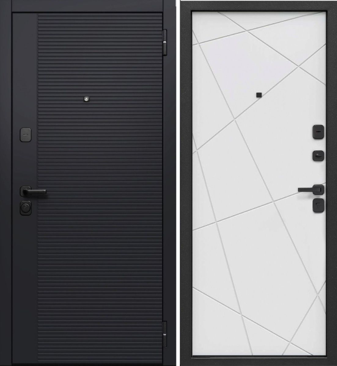 Накладки: накладная броненакладка основного замка, декоративная накладка дополнительного замка с защитой от сквозняка; цвет — черный