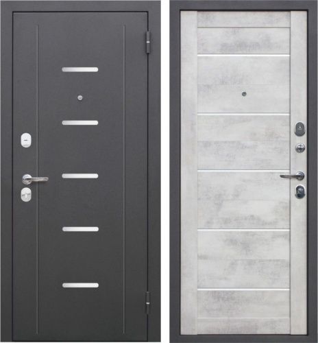 Внутреннее покрытие: царговая МДФ-панель 16 мм, цвет — «Бетон снежный», «Астана милки», «Дуб неаполь грей», вставки из глянцевого стекла Лакобель