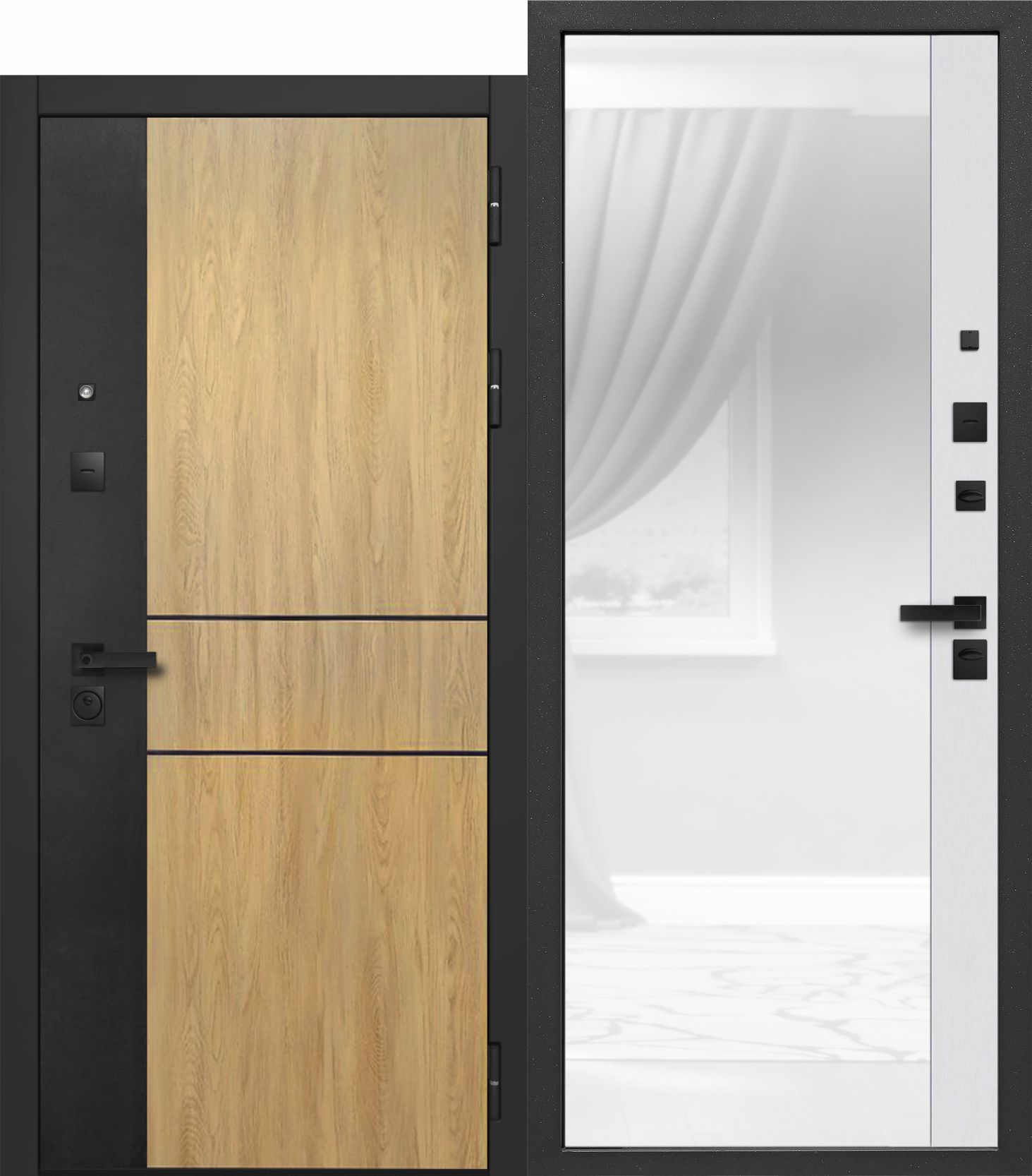 Внешнее покрытие: МДФ-панель 10 мм, цвет пленки: «Сатин черный», «Дуб мадейра янтарь».