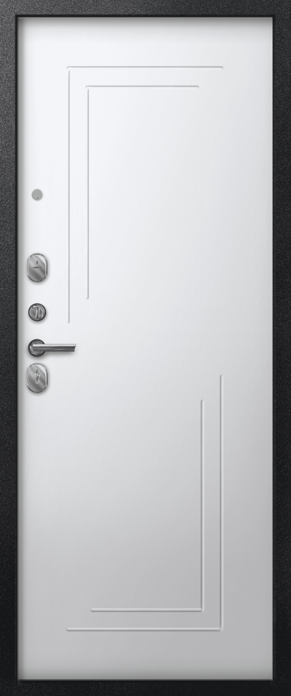 Броненакладка на цилиндр, ручка раздельная, ночная задвижка, 2 петли, цилиндр ключ/вертушка, глазок, противосъемные штыри