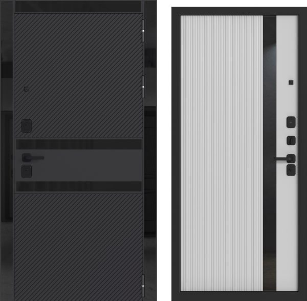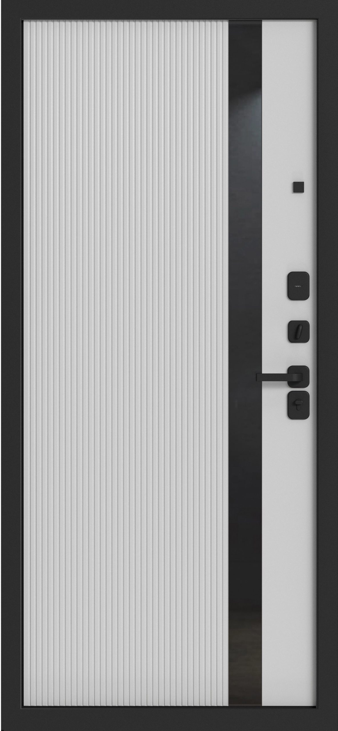 Внутреннее покрытие: фрезерованная МДФ панель 10 мм, цвет «Белый софт», вставка стеклянная в цвете «Lacobel Чёрный»