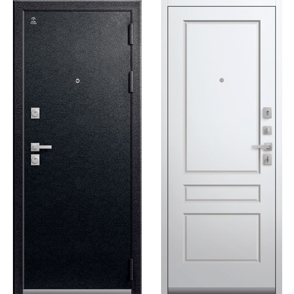Броненакладка на цилиндр, Ночная задвижка, Ручка раздельная, 3 петли, Эксцентрик (регулятор притвора), Нержавеющий порог, Глазок, Противосъемные штыри.