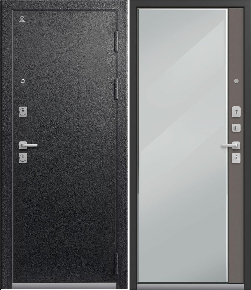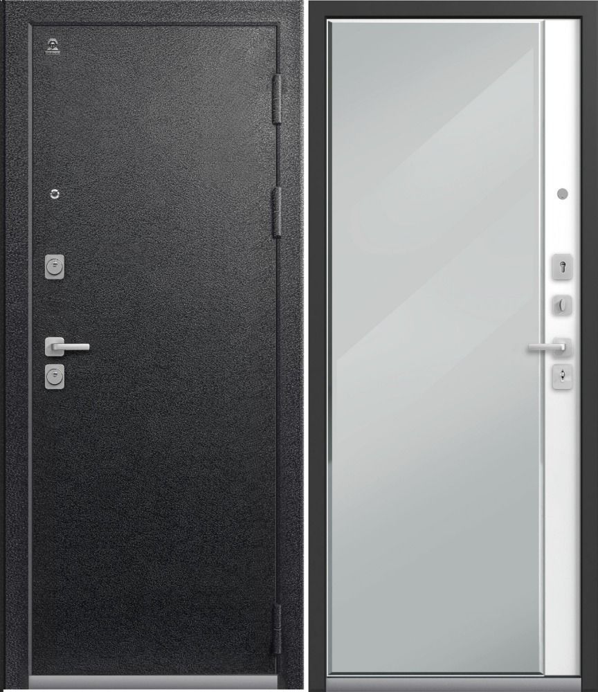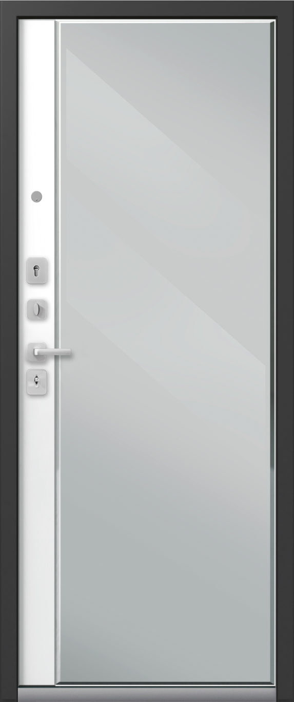 Броненакладка на цилиндр, ночная задвижка, ручка раздельная, 3 петли, нержавеющий порог, глазок, противосъемные штыри.