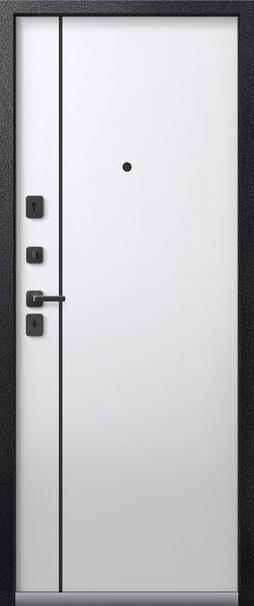 Броненакладка на цилиндр, ночная задвижка, ручка раздельная, 3 петли, нержавеющий порог, глазок, противосъемные штыри