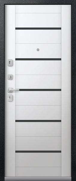 Броненакладка на цилиндр, ночная задвижка, ручка раздельная, 3 петли, нержавеющий порог, глазок, Противосъемные штыри