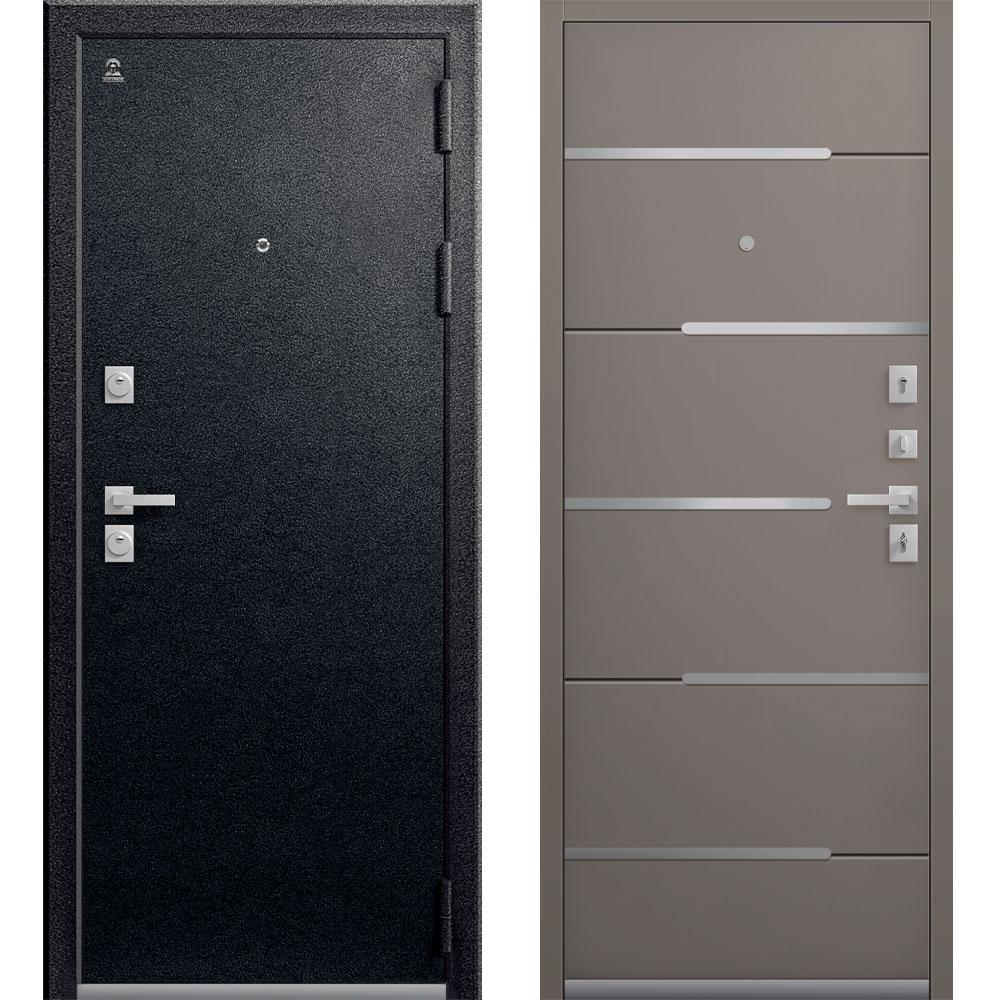 Броненакладка на цилиндр, Ночная задвижка, Ручка раздельная, 3 петли, Нержавеющий порог, Глазок, Противосъемные штыри, Эксцентрик (регулятор притвора)