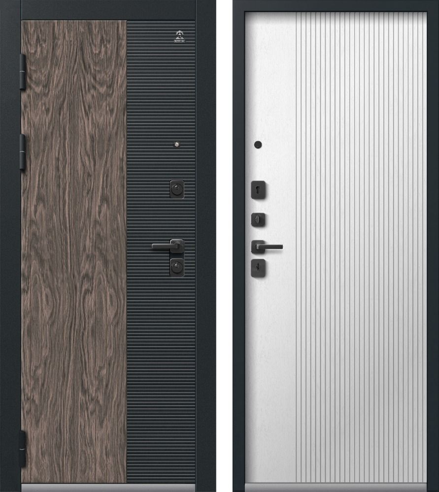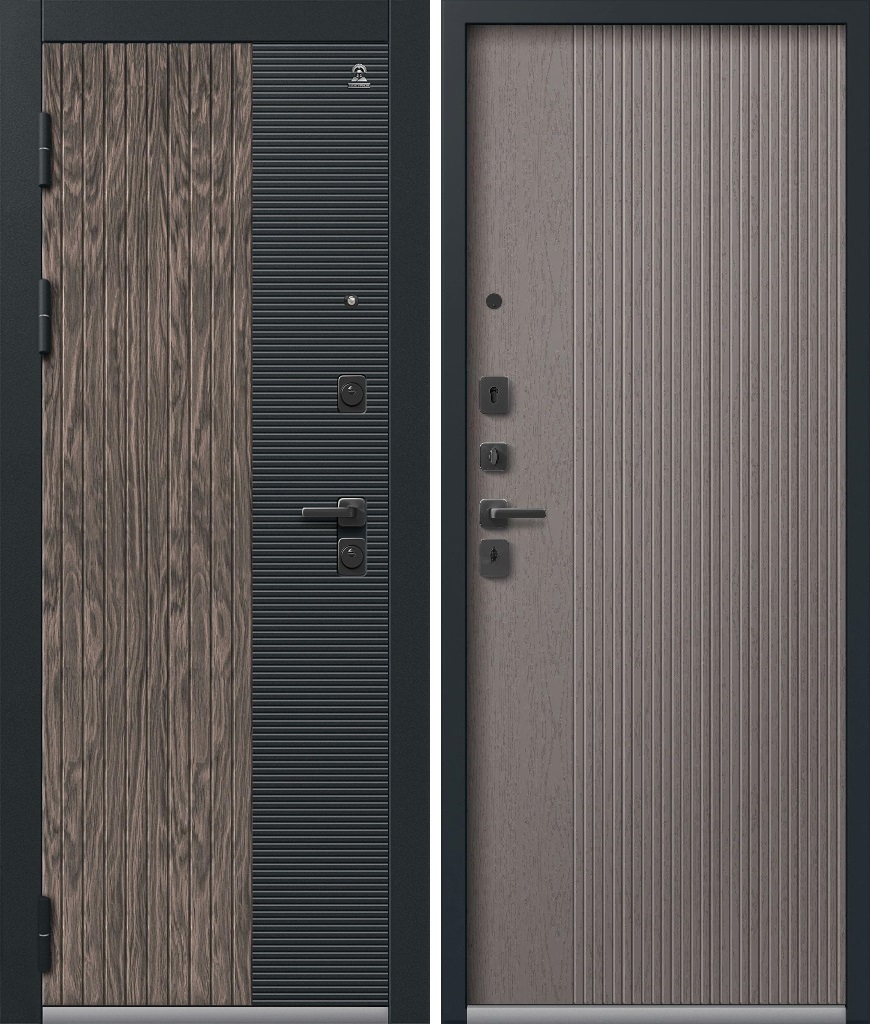 Внешнее покрытие: Металл «Черный муар» + МДФ-панель 10 мм «Кварц черный + орех мокко»