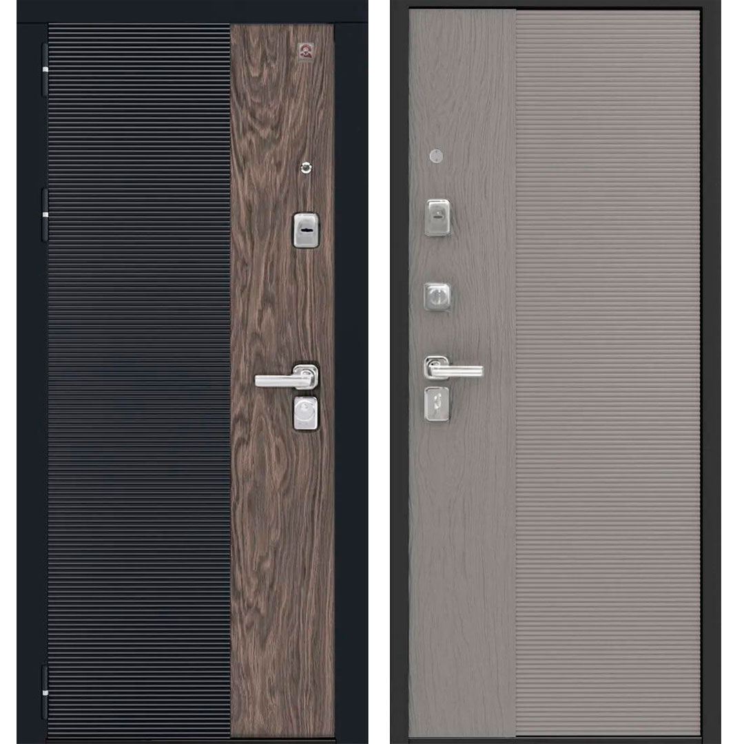 Внешнее покрытие: Металл «Черный муар» + МДФ-панель 10 мм «Кварц черный + Орех американский мокко»