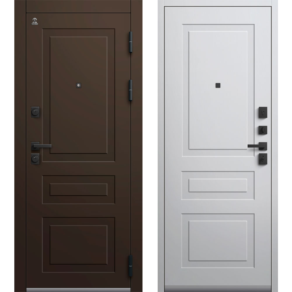 Броненакладка на цилиндр, Ночная задвижка, Ручка раздельная, 3 петли, Нержавеющий порог, Глазок