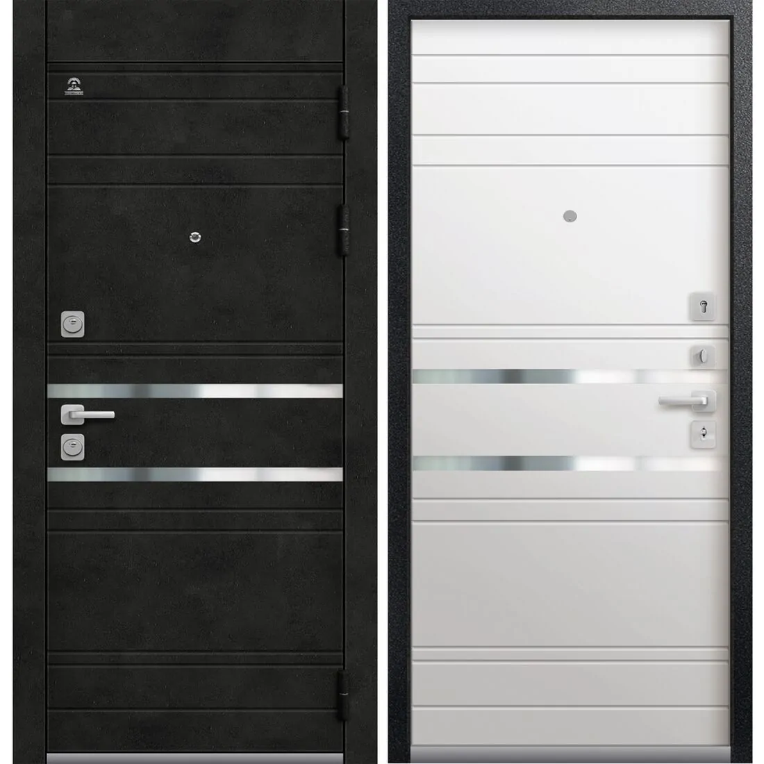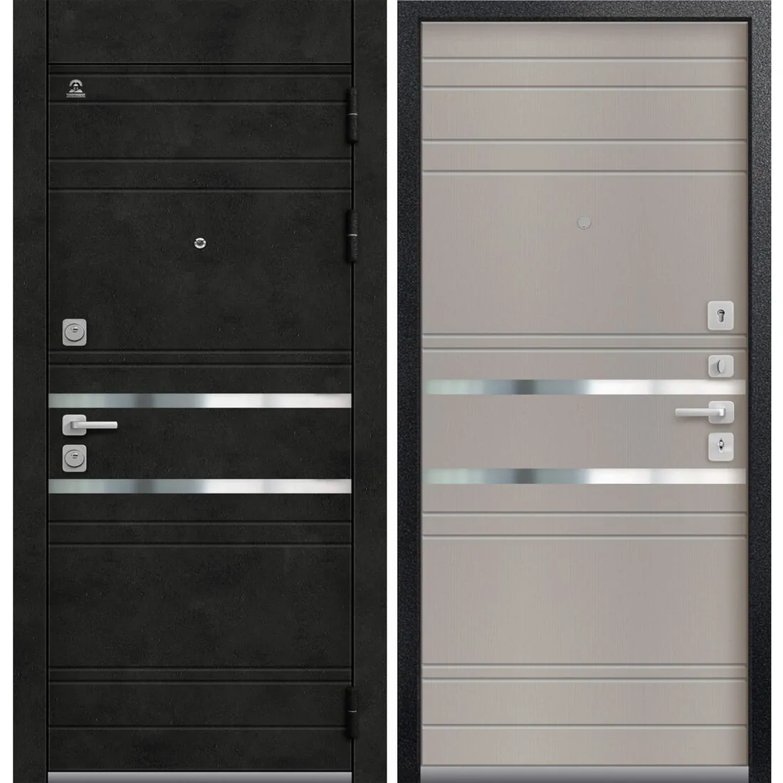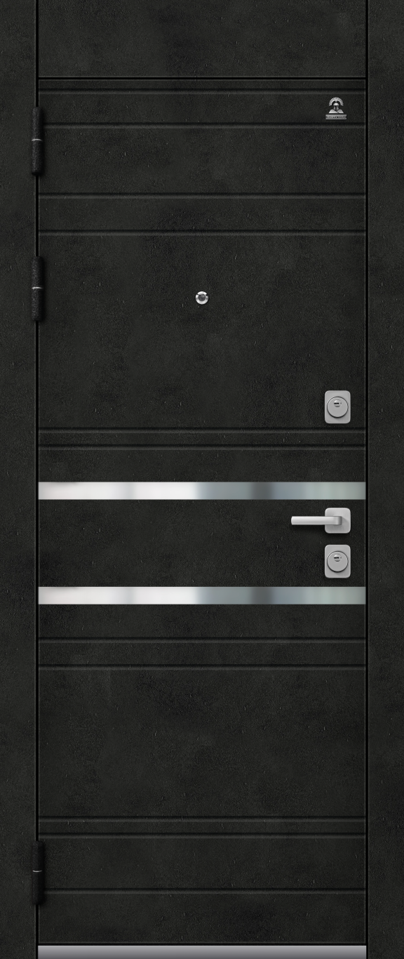 Внешнее покрытие: металл черный муар МДФ-панель 10 мм «Бетон темный» + молдинг (нержавеющая сталь)