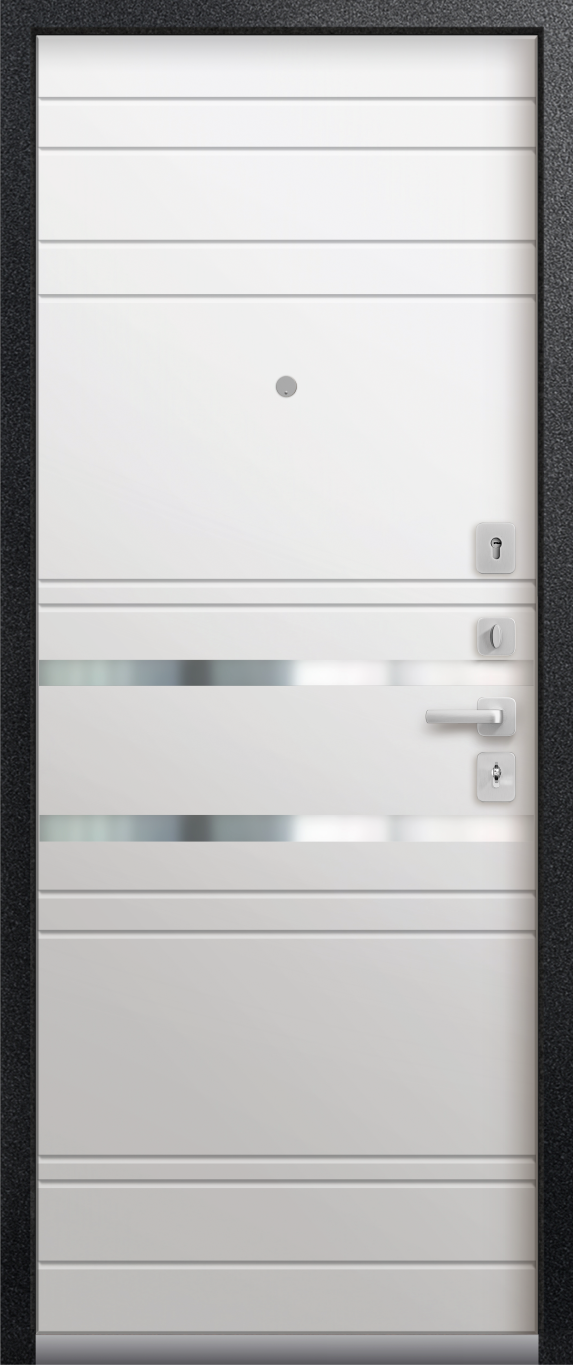 Броненакладка на цилиндр, ночная задвижка, ручка раздельная, 3 петли, нержавеющий порог, глазок
