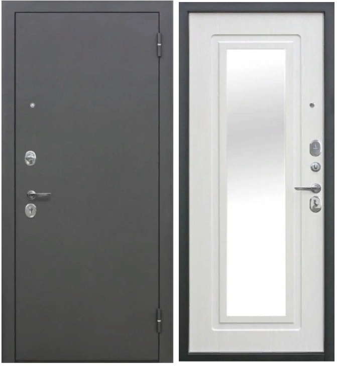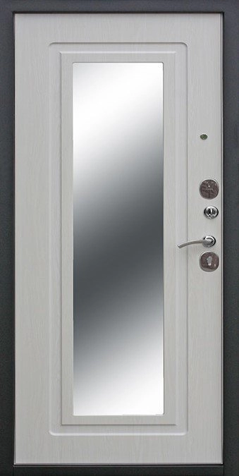 Внутреннее покрытие: фрезерованная МДФ-панель 10 мм, цвет — «Белый ясень», встроенное зеркало с защитной плёнкой