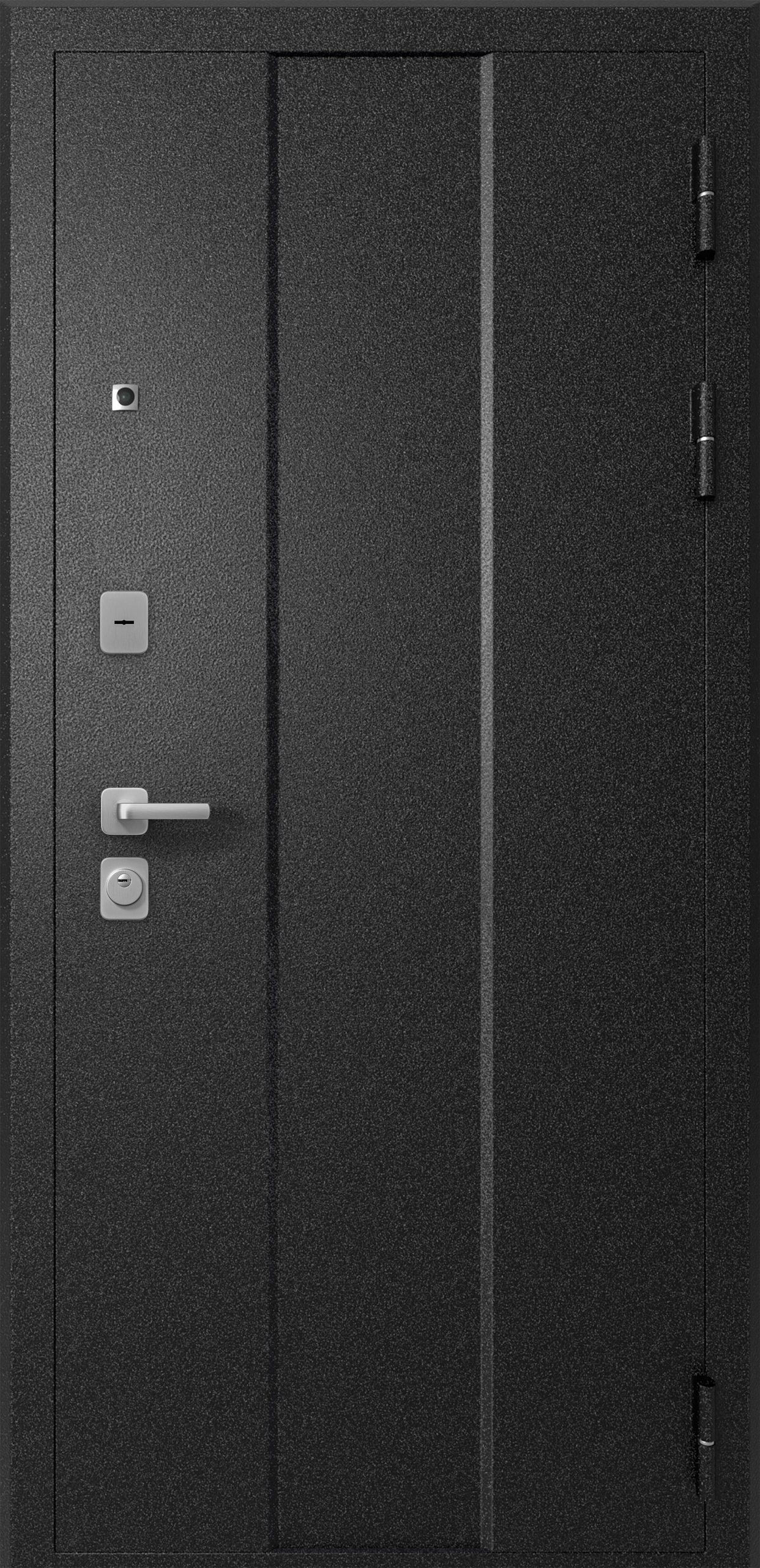 3 петли, декоративная накладка на сувальдном замке, броненакладка на цилиндр, ночная задвижка, ручка раздельная, глазок, эксцентрик