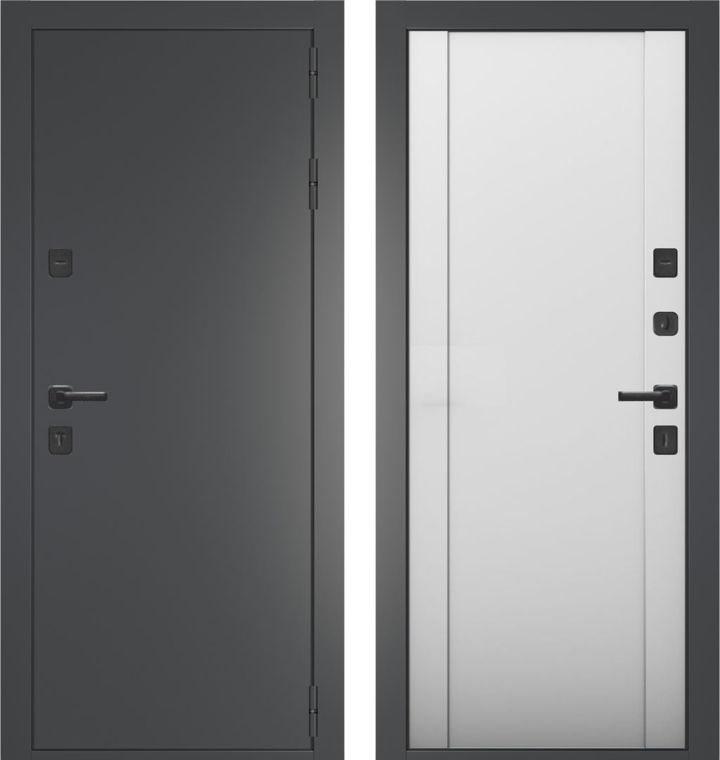 Петли 2 шт, Замок цилиндровый Genesis 9.17 сувальдный Genesis 9.16, Независимая ночная задвижка, Регулировка прижима притвора: эксцентрик, броненакладка, глазка нет