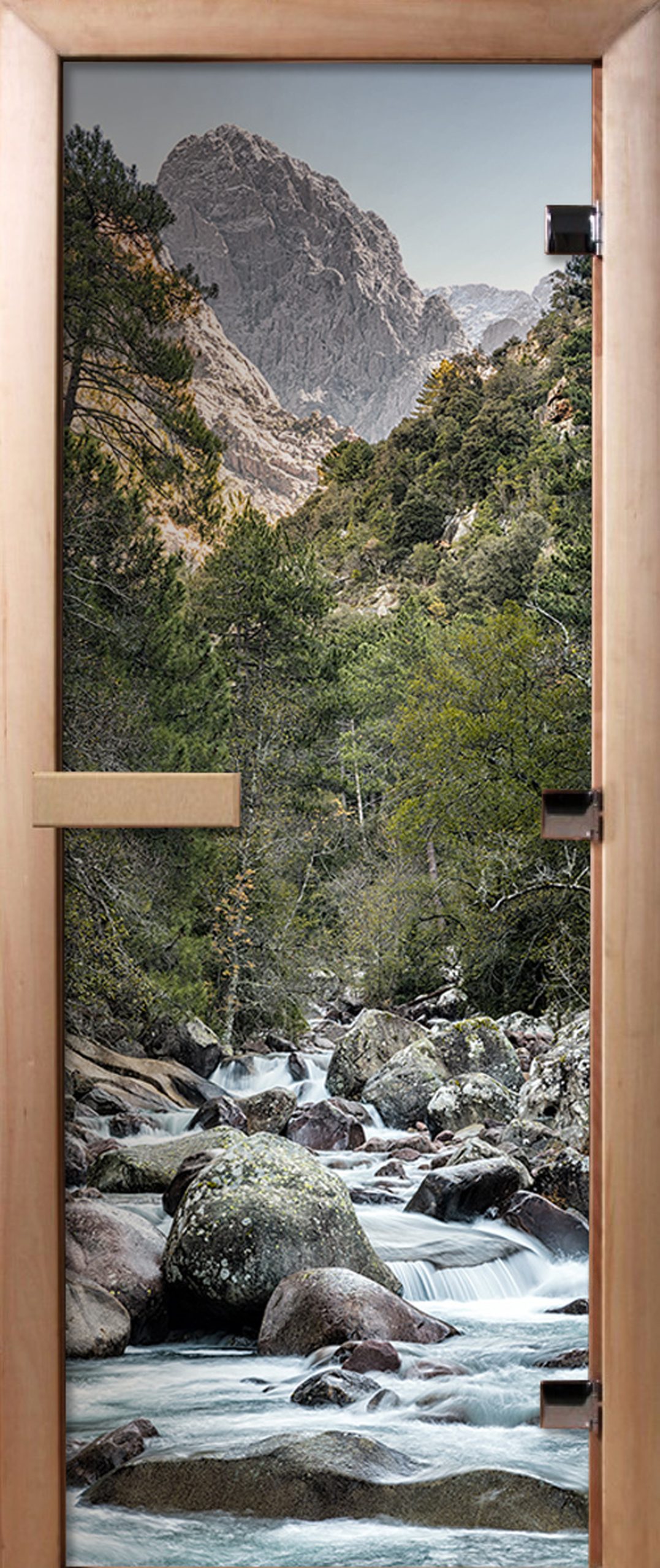Дверь для бани и сауны с термически закалённым стеклом с фотопечатью