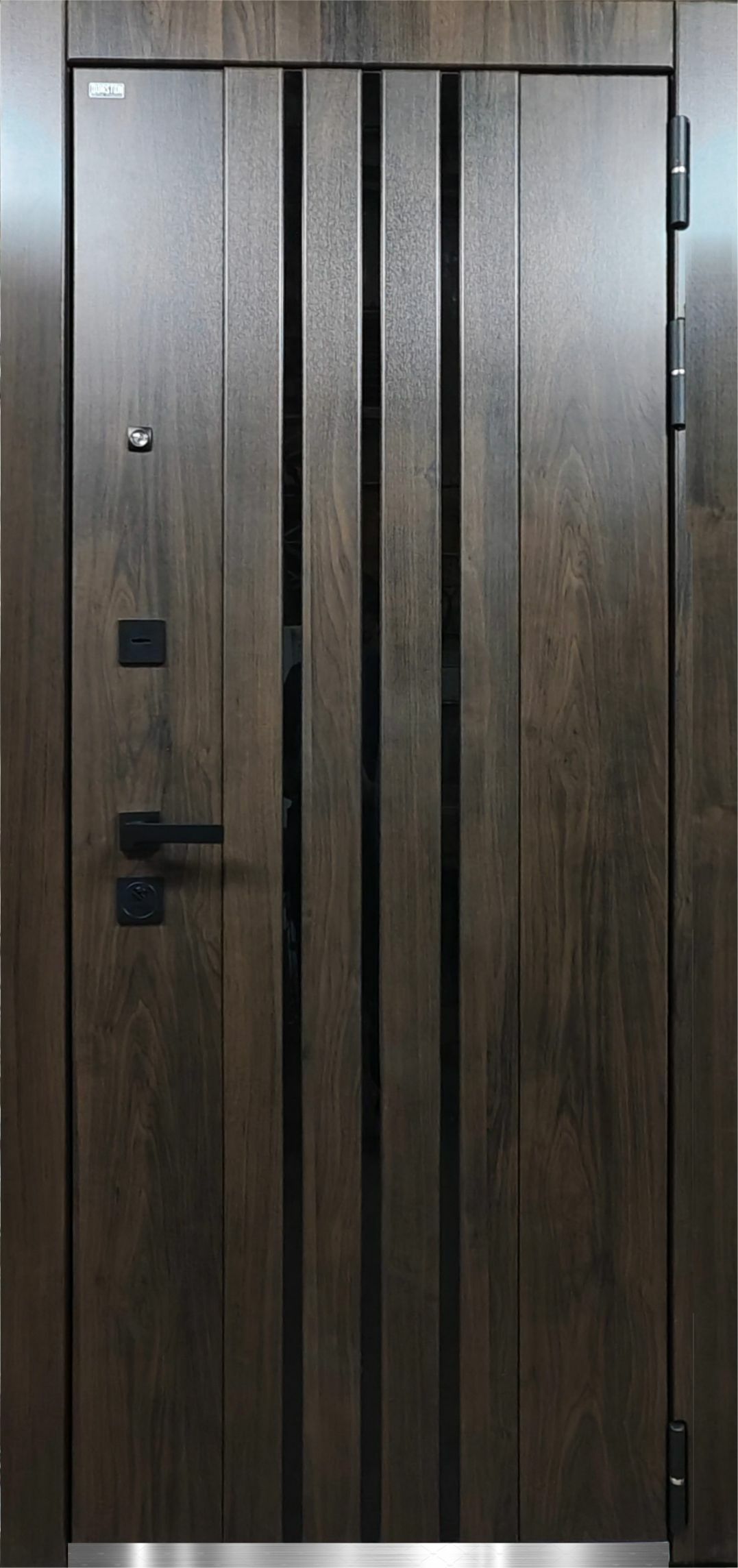 Внешняя отделка: «Муар черный», Декоративная сборная МДФ панель 10 мм, цвет — Дуб мореный, вставки — лакобель черный