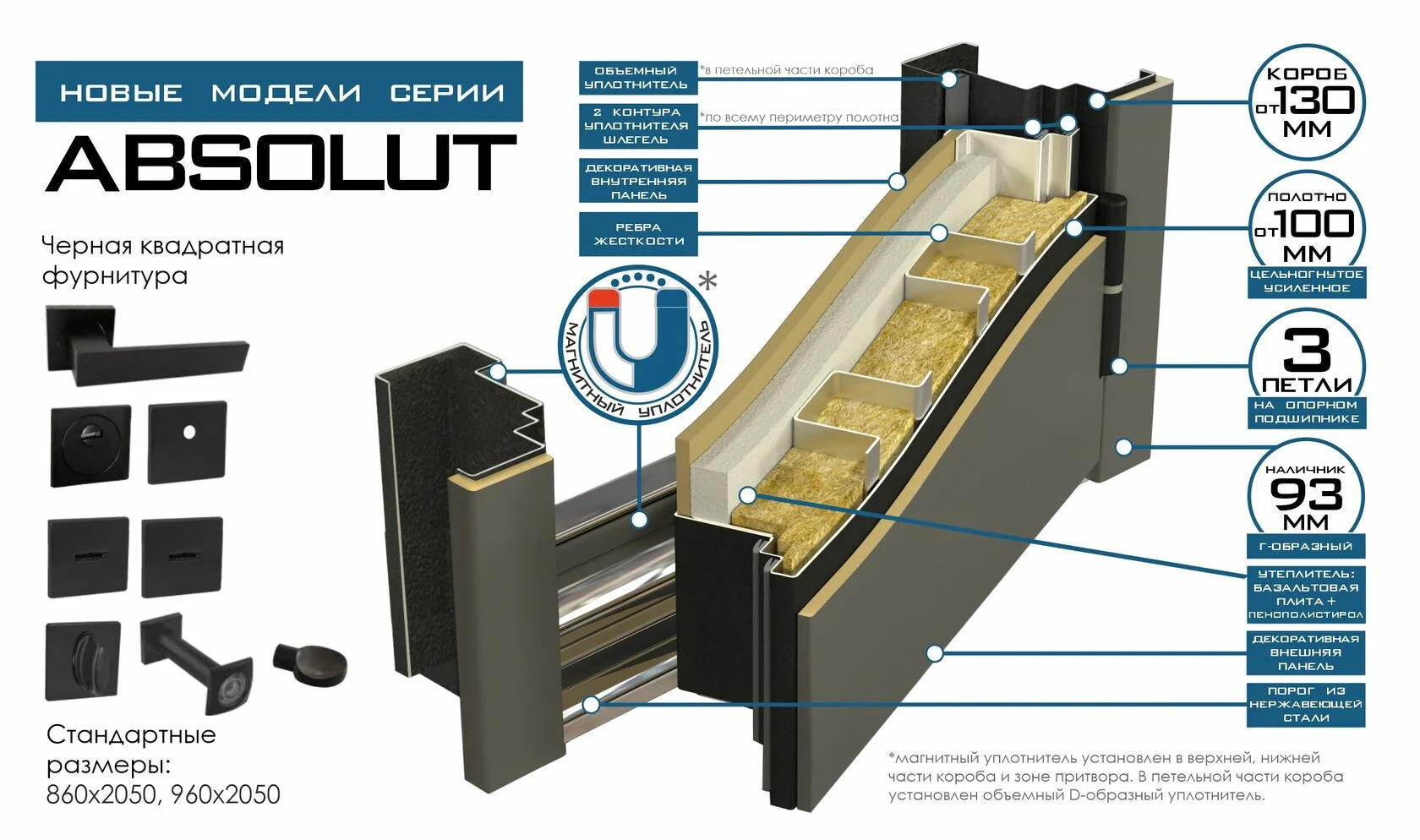 Уплотнители: 2 шт. — шлегельных на полотне + 1 шт. магнитный уплотнитель на коробе