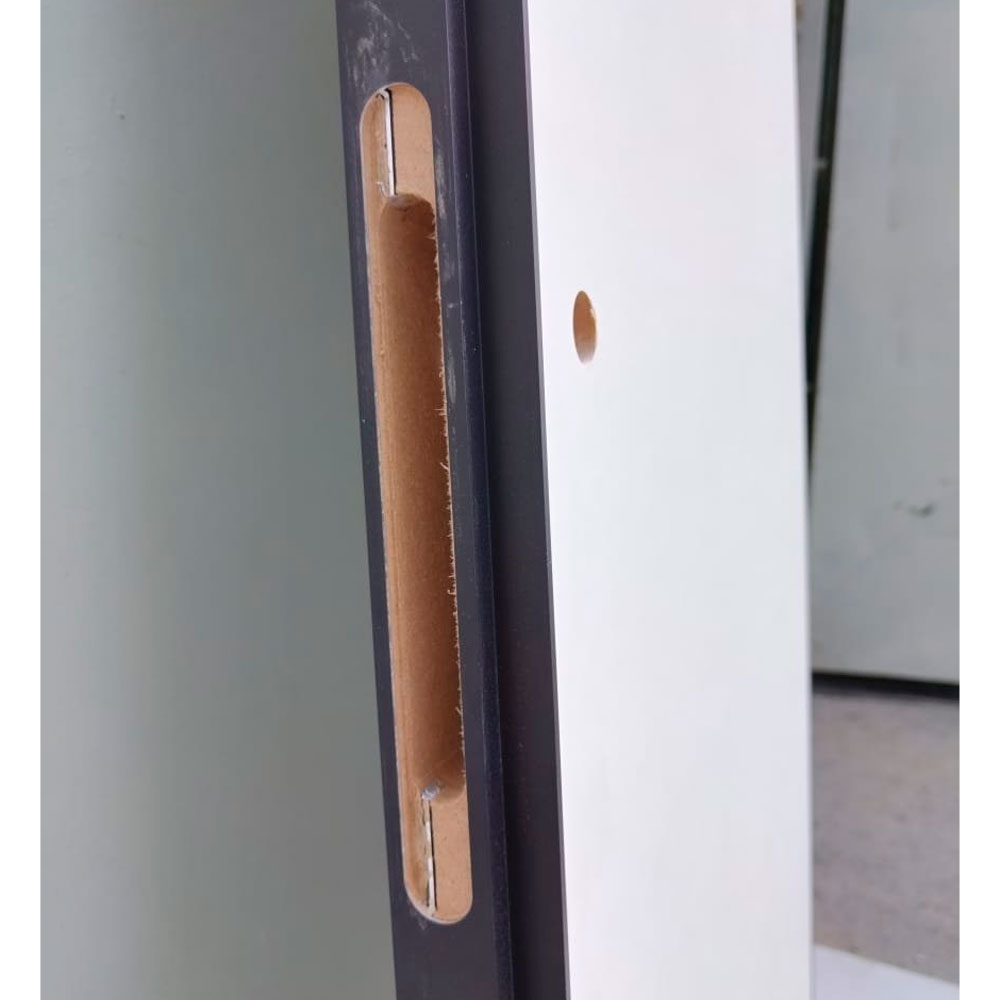 Заводская врезка под скрытые петли и магнитный замок (бэксет — 50 мм, межосевое — 96 мм). На полотне высотой 2300 мм врезка под 3 петли.