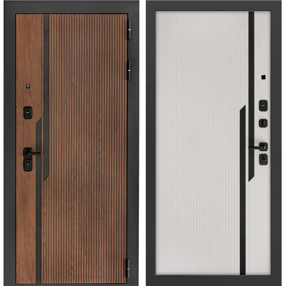 Внешнее покрытие: Чёрный муар + фрезерованная МДФ-панель, цвет «Орех американский»