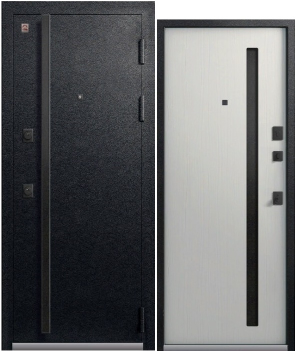 Броненакладка на цилиндр, цилиндр-ключ/вертушка, декоративные накладки с автоматическими шторками, ночная задвижка, ручка раздельная, 3 петли, глазок, нержавеющий порог
