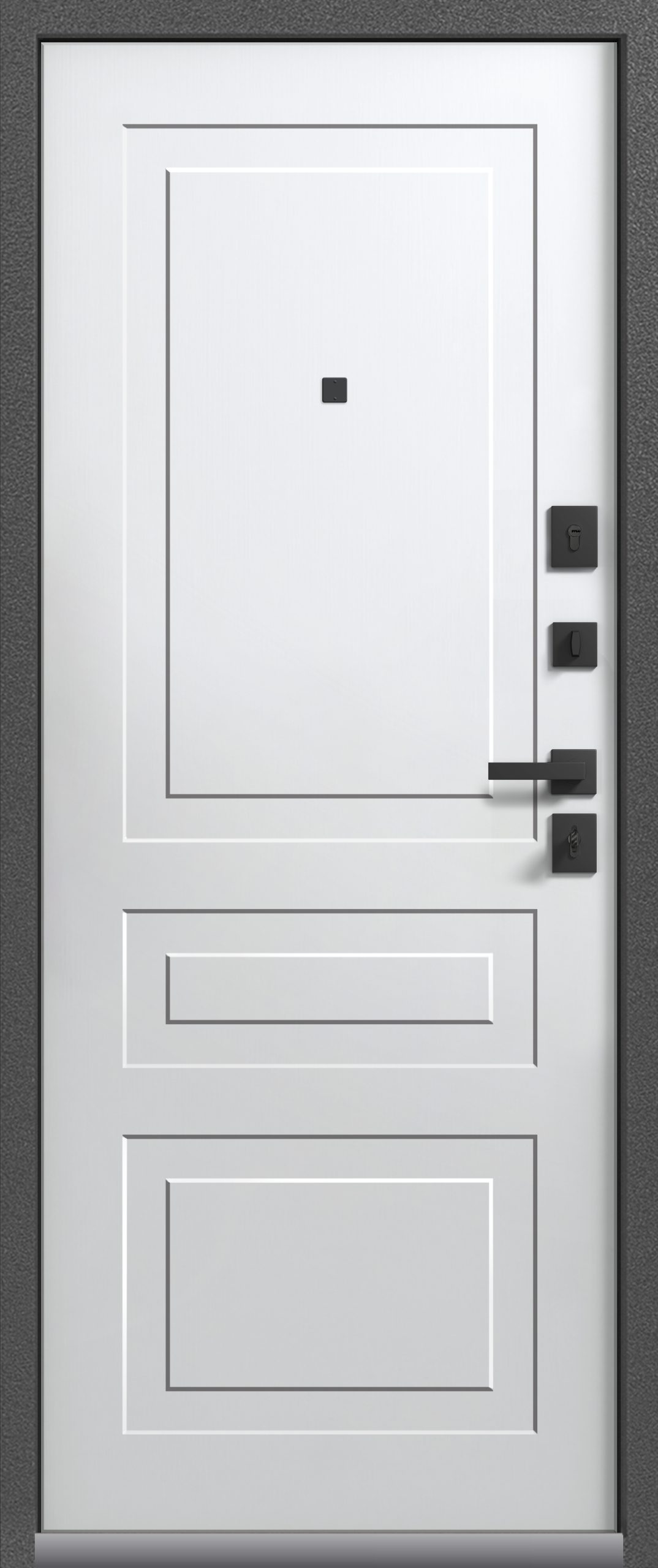Броненакладка на цилиндр, цилиндр- ключ/ключ или цилиндр-ключ/вертушка (на усмотрение производителя), ночная задвижка, ручка раздельная, 3 петли, глазок, нержавеющий порог