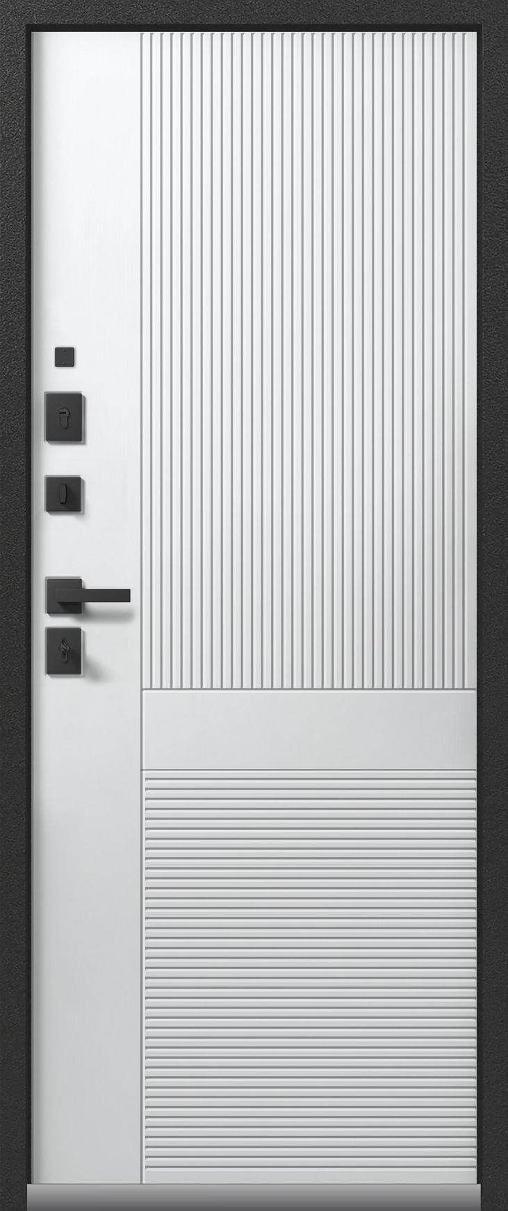 Броненакладка на цилиндр, цилиндр-ключ/вертушка, ночная задвижка, ручка раздельная, 3 петли, глазок, нержавеющий порог