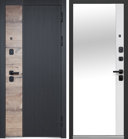 Внешнее покрытие: фрезерованная МДФ-панель 12 мм, цвета пленок «Канадский дуб пацифик», «Сатин черный»
