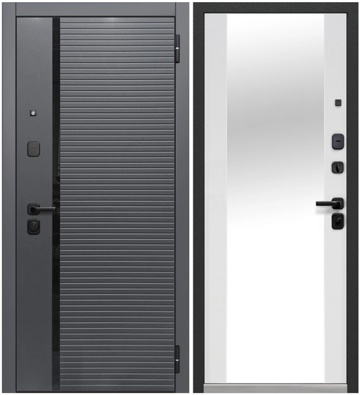 Внешнее покрытие: фрезерованная МДФ-панель 12 мм, вставка черный лакобель, цвет пленки «Сатин графит»