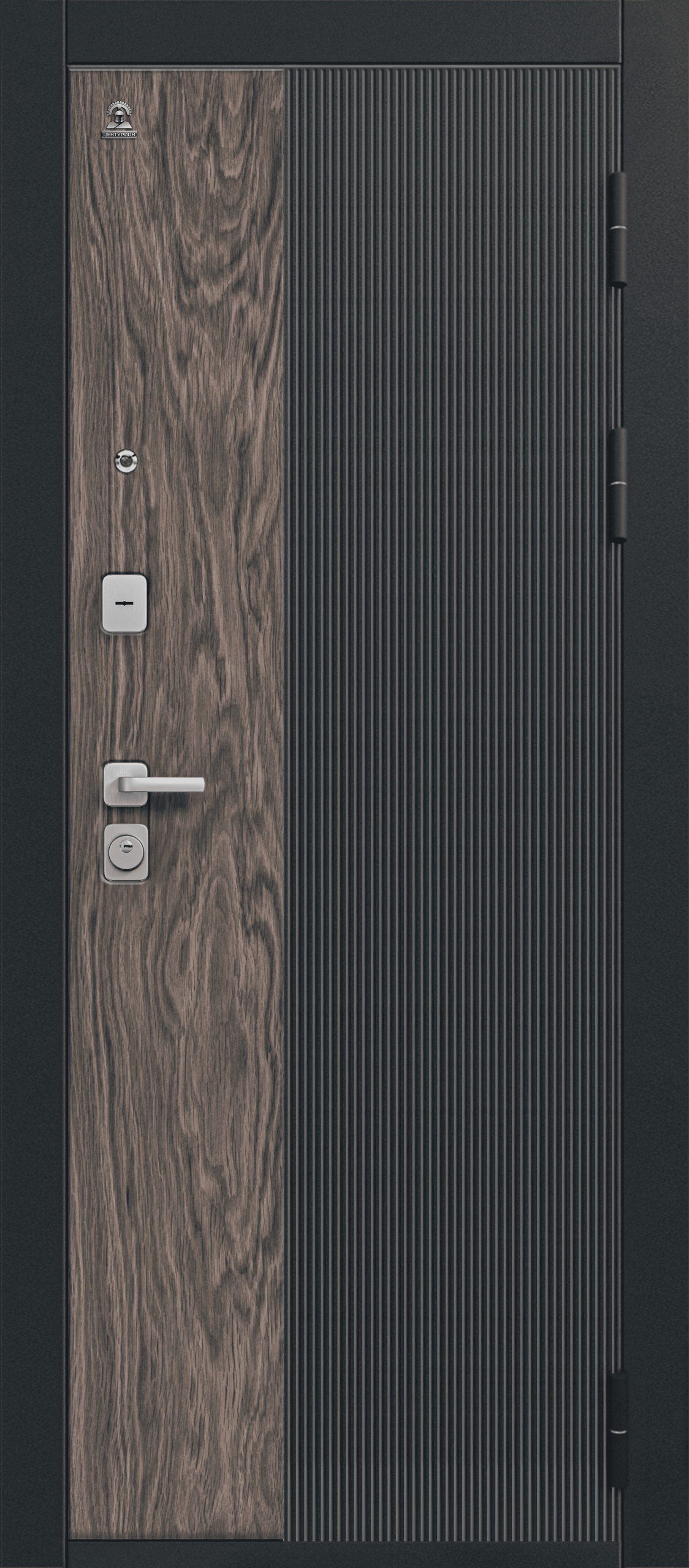 Внешнее исполнение: Металл Черный муар + щит МДФ 10 мм Орех Мокко
