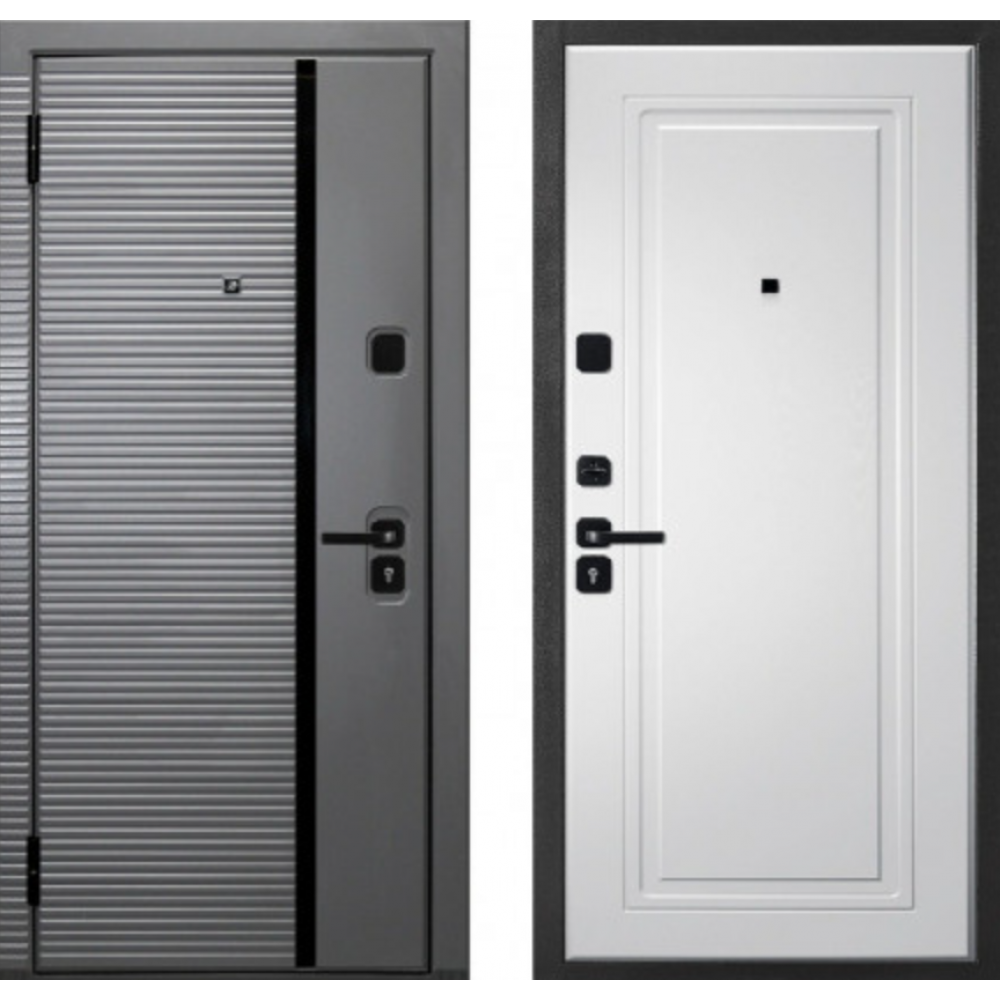 Внешнее покрытие: фрезерованная МДФ-панель Графит + вставка черное стекло