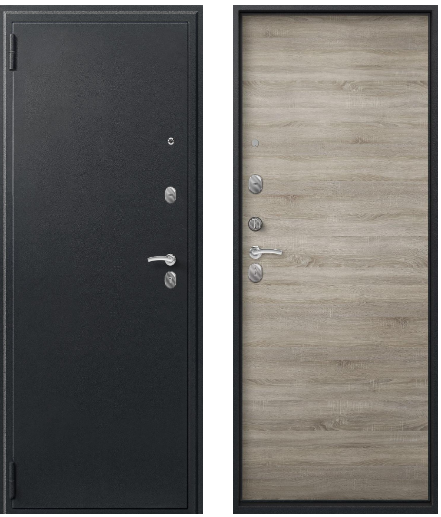 Декоративная накладка, цилиндр-ключ/вертушка, ночная задвижка, ручка раздельная, 2 петли, глазок