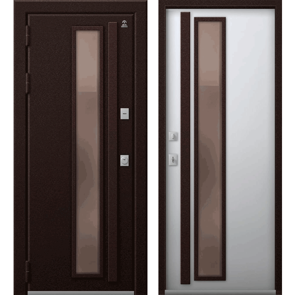 Эксцентрик (регулятор притвора), Накладка с автоматическими шторками под сувальдный ключ, ночная задвижка, ручка раздельная, 3 петли, нержавеющий порог, броненакладка на цилиндр, противосъемные штыри