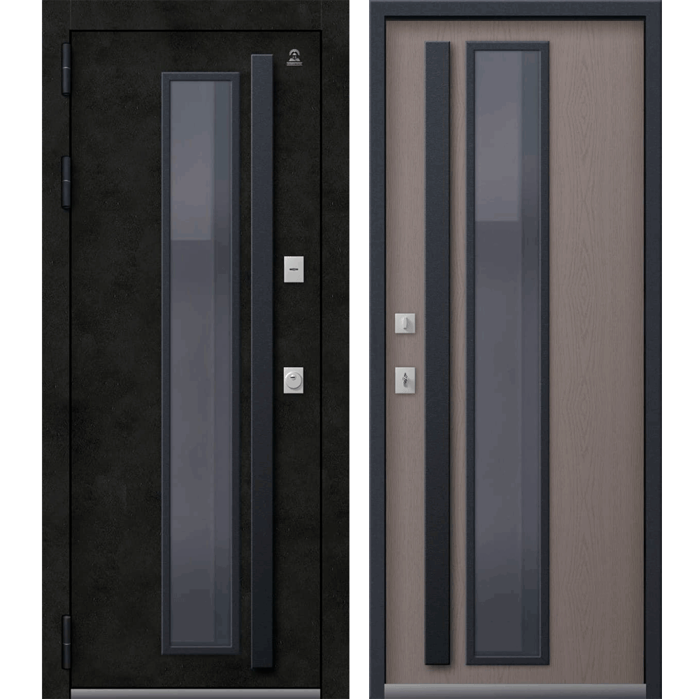 Внешнее исполнение: Металл + МДФ 10 мм Бетон тёмный + Двухкамерный стеклопакет (цвет стекла Grey)